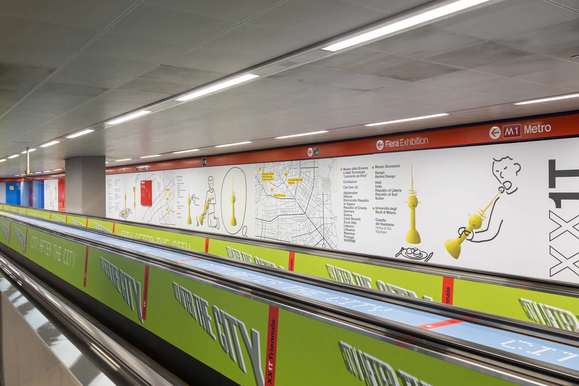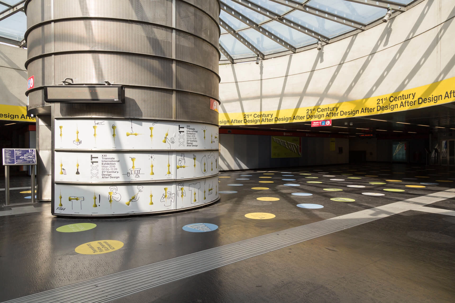 CamuffoLab designed the logo for the XXI Triennale (XX1T: The first Triennale after the 20th century), and created in collaboration with studio bruno the institutional communication, signage and general arrangement of the exhibitions. It also designed the communication campaign together with the Dutch studio kesselskramer for which it created a mysterious yellow object that, when placed in different contexts, evokes the interaction of man with design.